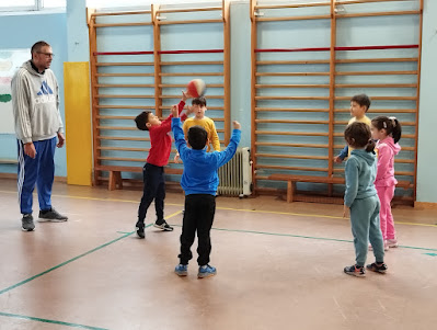 Hoxe estivo no noso centro Zarra, adestrador das Escolas Balonmán Xiria,para facer unha presentación práctica e lúdica do seu deporte, explicar o funcionamento do club (localización, horarios de adestramento, competicións…)